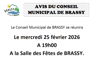 Par Arrêté préfectoral N°58-2026-02-1700002 le lieu du bureau de vote pour les élections municipales du 15 et du 22 mars 2026 se tiendra à la salle des fêtes de Brassy, rue des Écoliers. ...