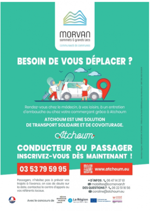 En complément de l’offre de transports en commun existante, la Communauté de communes Morvan Sommets et Grands Lacs se dote d'une toute nouvelle solution de mobilité rurale sur son territoire : ATCHOUM. ...